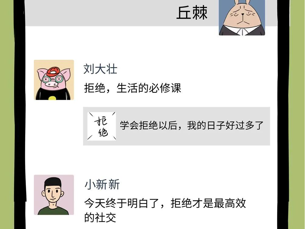 拒绝是为了遇见更好的自己。多数时候,婉拒家人的“好意”,退出热络的朋友聚会,不是为了拒绝本身,是因为我们在更大程度上遵从了自己的内心,做出了自己更好的选择——我们尝试独自理清生活的思路,选择偶尔独处思考,选择能让自己走向更好的道路。