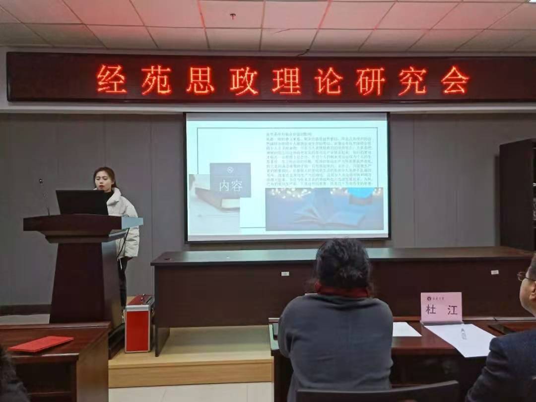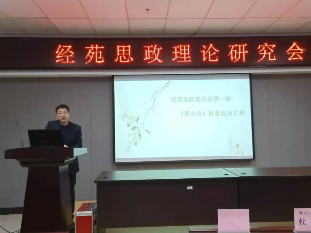 为加强学风建设,营造良好的学习氛围、进一步引导学生深化对课程思政的认识和思考,近日,我院在综合楼C区七楼会议室举办了第一届《资本论》原著选读大赛,经苑思政理论研究会指导教师杜江、经济系教师池学勇出席并担任评委。