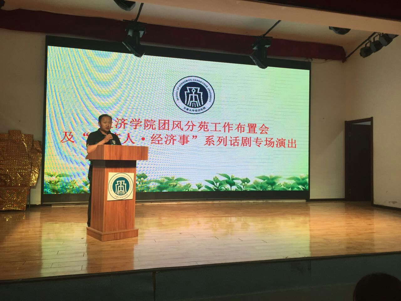 为落实学校《中共长春大学委员会关于加强和改进新形势下思想政治教育工作的实施方案》文件精神,进一步落实学院团风分苑工作安排和加强学生活动与专业教育的结合,6月23日下午,必赢3003no1线路检测中心在第三教学楼一楼演艺厅召开团风学苑必赢3003no1线路检测中心分苑工作布置会及“经济人•经济事”系列话剧专场演出。学院领导、团风分苑成员和部分教师参加了此次活动。