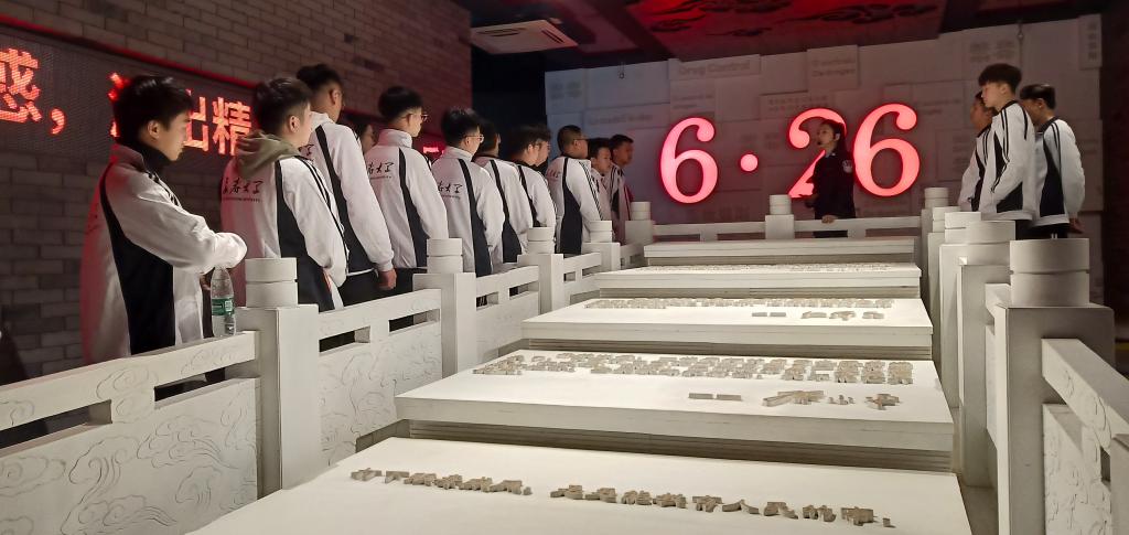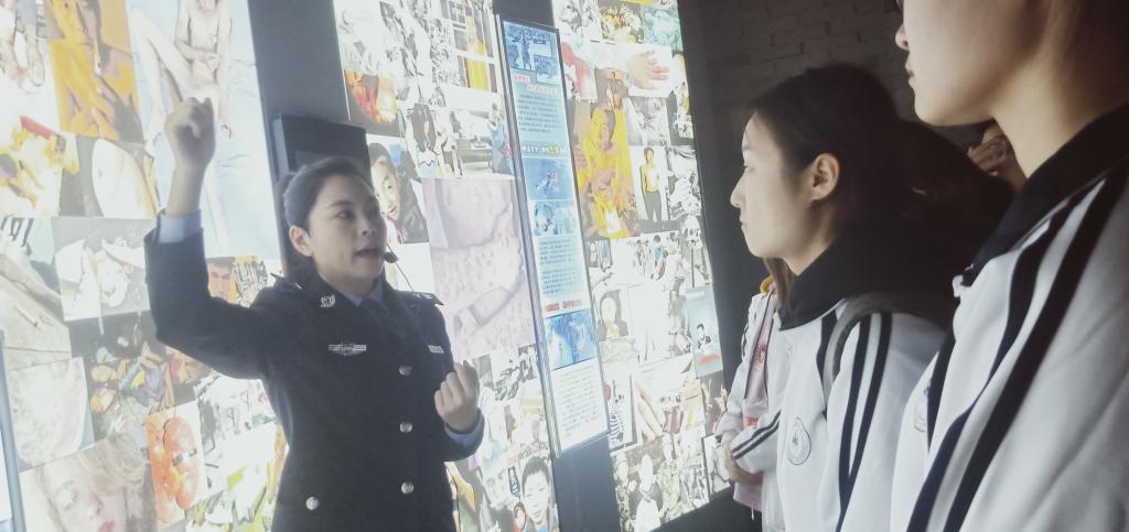 在禁毒教育基地中,同学们聆听解说员关于吸食毒品的危害、吸毒人员状况,让同学们了解到毒品带给人类的危害,进一步加强了同学们对毒品的预防意识,提高了同学们抵制毒品的自觉性。