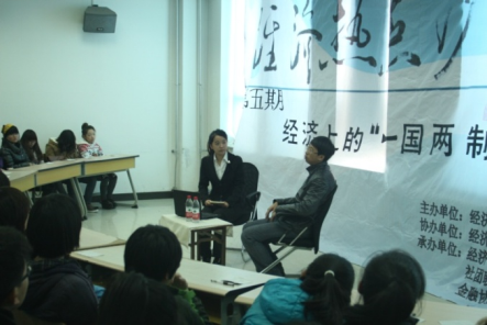 经济热点沙龙一直以为关心社会经济的同学提供一个开放的交流平台,创建一个自由、和谐、融洽的学术氛围为目的而举办的访谈类活动。讨论话题一展开,150余名学生观众便纷纷针对自己不懂得问题积极主动的向老师提问,与老师共同探讨,拉近了老师与同学之间的距离,沙龙成为了一座沟通师生关系及学术问题的桥梁。